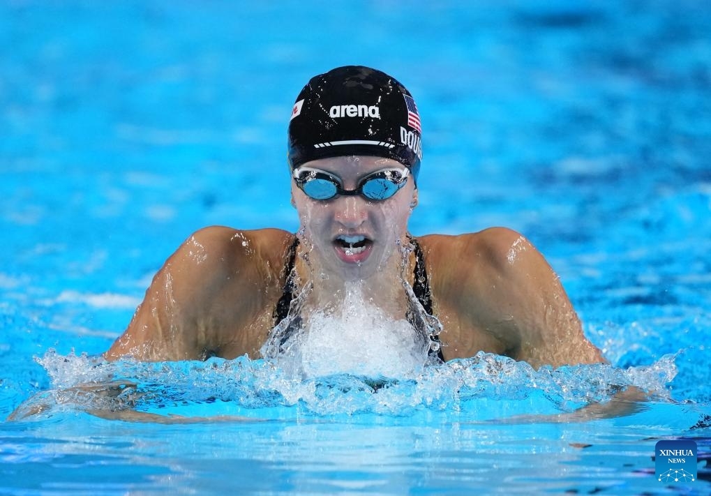 Kate Douglass of the United States competes during the women's 200m breaststroke final at the World Aquatics Championships in Singapore, Aug. 1, 2025. (Xinhua/Wu Zhizun)