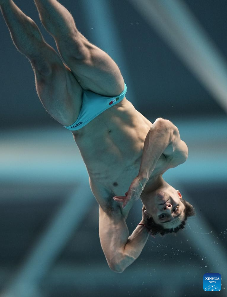 Osmar Olvera Ibarra of Mexico competes during the men's 3m springboard final of diving at the World Aquatics Championships in Singapore, Aug. 1, 2025. (Xinhua/Xue Yuge)