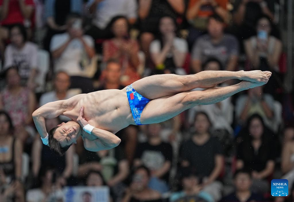SINGAPORE, Aug. 1 (Xinhua) -- China's Qin Haiyang powered to his second gold medal at the World Aquatics Championships on Friday, storming from lane eight to win the men's 200m breaststroke, while Mexico's Osmar Olvera Ibarra stunned the field in diving to capture the men's 3-meter springboard crown.