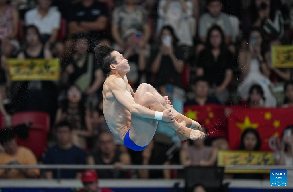 Wang Zongyuan of China competes during the men's 3m springboard final of diving at the World Aquatics Championships in Singapore, Aug. 1, 2025. (Xinhua/Xue Yuge)