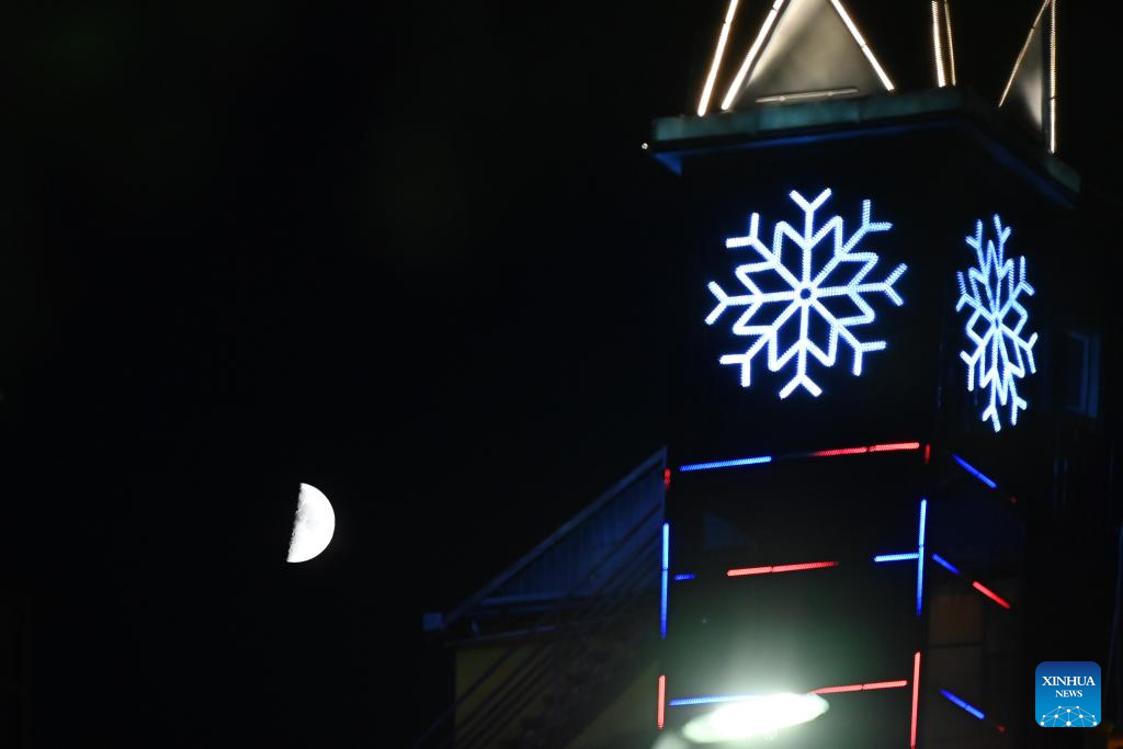 This photo taken on Aug. 1, 2025 shows the first quarter moon in the sky in Harbin City, northeast China's Heilongjiang Province. (Photo by Yuan Yong/Xinhua)