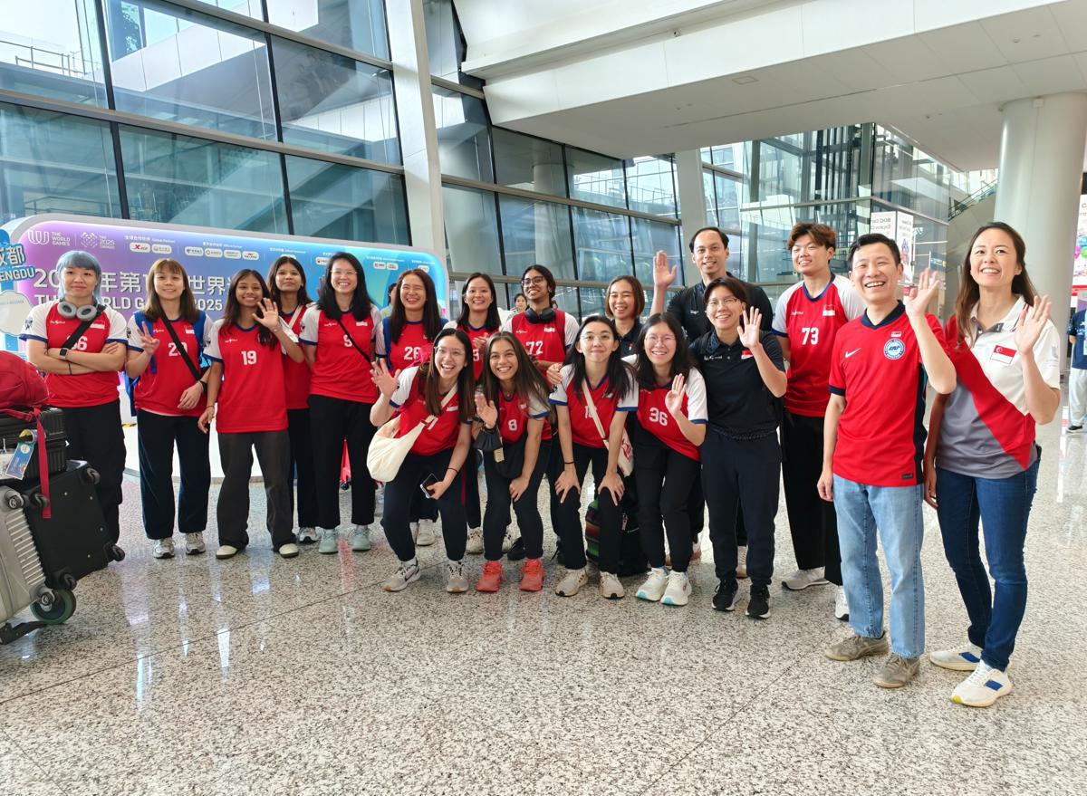 The Singaporean floorball team for the 2025 Chengdu World Games arrives at Chengdu Tianfu International Airport in the capital of Sichuan province on Sunday morning. [Photo provided to chinadaily.com.cn]