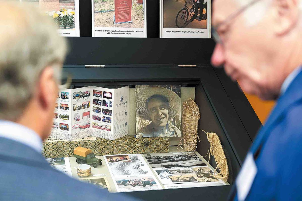 People attend an exhibition commemorating British journalist and educator George Hogg in Harpenden, a town in Hertfordshire county of England, on July 22. Hogg dedicated his life to supporting China's war against Japanese aggression 80 years ago. WU LU/XINHUA