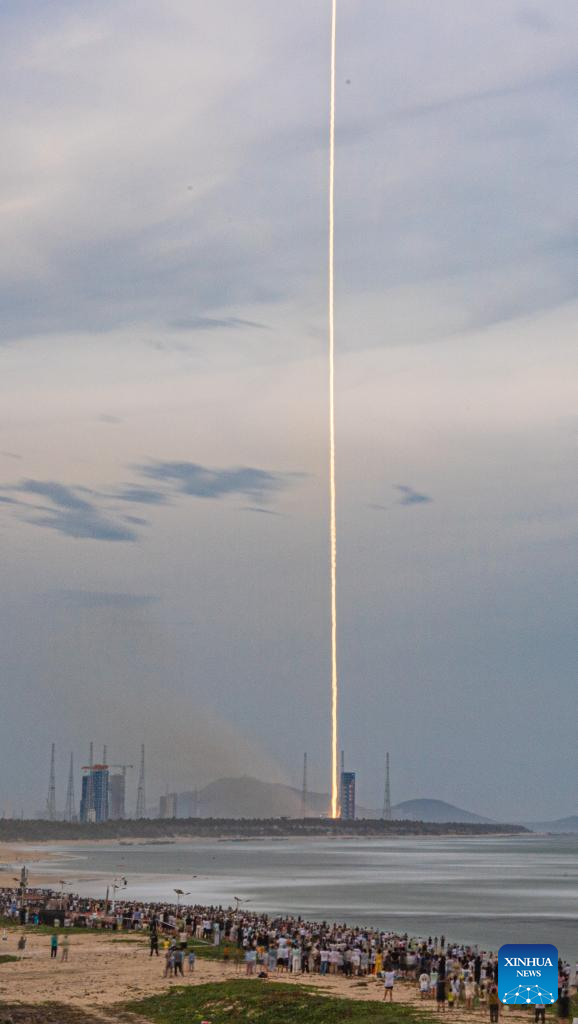 A Long March-12 carrier rocket carrying a group of internet satellites blasts off from the Hainan commercial spacecraft launch site in south China's Hainan Province, Aug. 4, 2025. The rocket lifted off at 6:21 p.m. from the Hainan commercial spacecraft launch site in the southern island province of Hainan. It successfully placed the payloads, the seventh group of low-orbit internet satellites, into preset orbit. (Xinhua/Pu Xiaoxu)