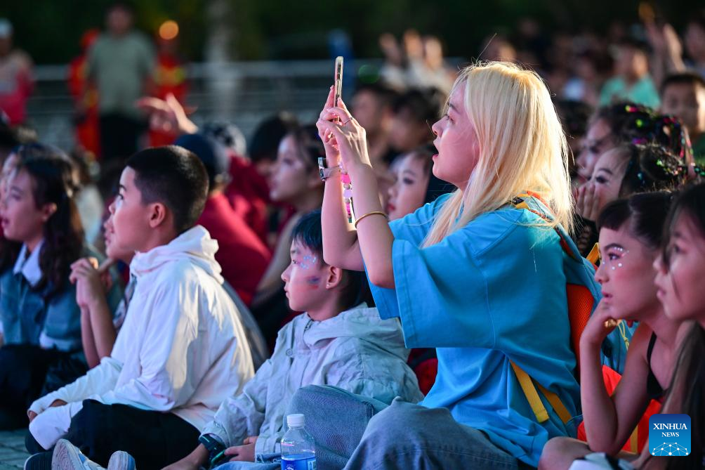 People watch a street dance show in Karamay, northwest China's Xinjiang Uygur Autonomous Region, Aug. 3, 2025. The street dance show, held as part of the 7th China Xinjiang International Dance Festival, took place on Sunday in Karamay City. More than 600 dancers from home and abroad performed on stage, delivering a captivating show for the audience. (Xinhua/Ding Lei)