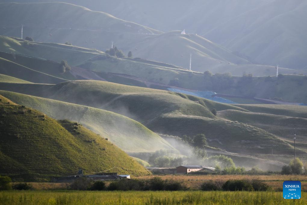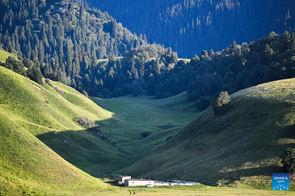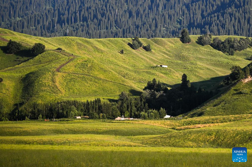 This photo taken on Aug. 3, 2025 shows a view of the Narat grassland in Ili Kazak Autonomous Prefecture, northwest China's Xinjiang Uygur Autonomous Region. (Xinhua/Xin Yuewei)