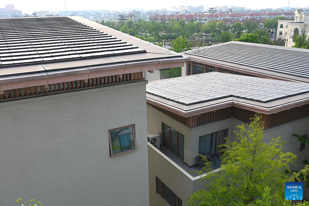 Rooftop photovoltaic panels are pictured at Meilin Village in Xiaoshan District of Hangzhou, east China's Zhejiang Province, on Aug. 4, 2025. Meilin, which has long been a model village for rural development, has been actively exploring ways to reduce pollution and carbon emissions in recent years. Through a series of measures such as promoting rooftop photovoltaic projects, building smart farmlands and integrated photovoltaic charging and storage stations, clean energy is being widely adopted here, injecting green impetus for the rural revitalization. (Xinhua/Mao Zhu)