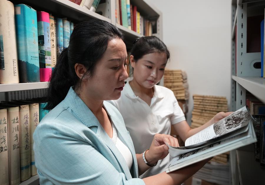Shi Renhua (L) and her colleague check files at the 9.18 Historical Museum in Shenyang, northeast China's Liaoning Province, July 28, 2025. (Xinhua/Li Gang)