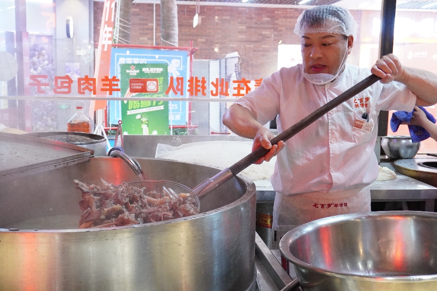 A chef simmers mutton broth in Xuzhou, east China's Jiangsu Province, August 1, 2025. (People's Daily Online/Yu Liang)