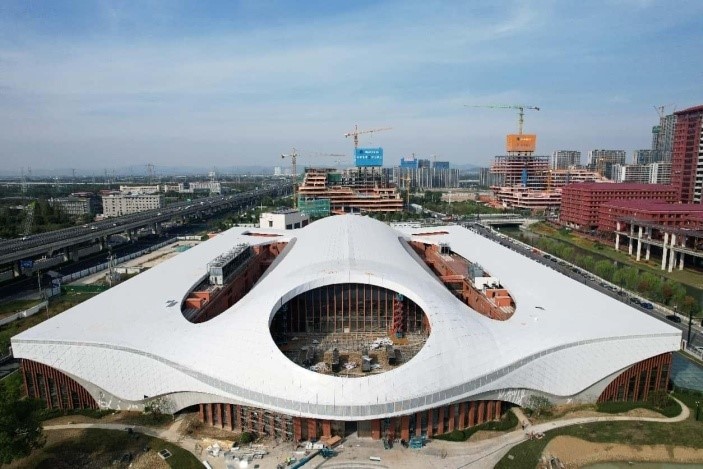 Photo shows an aerial view of the experimental building for the Centrifugal Hyper-gravity and Interdisciplinary Experiment Facility (CHIEF) at Zhejiang University. (Photo/Long Wei)