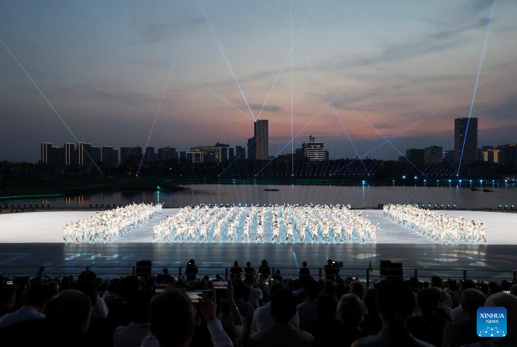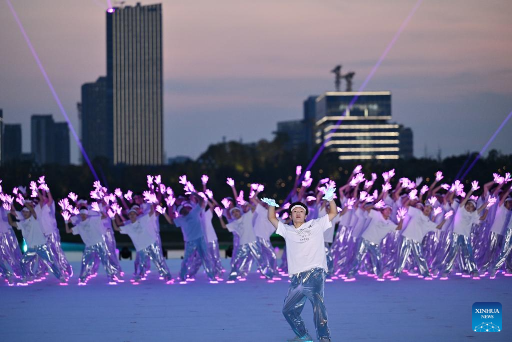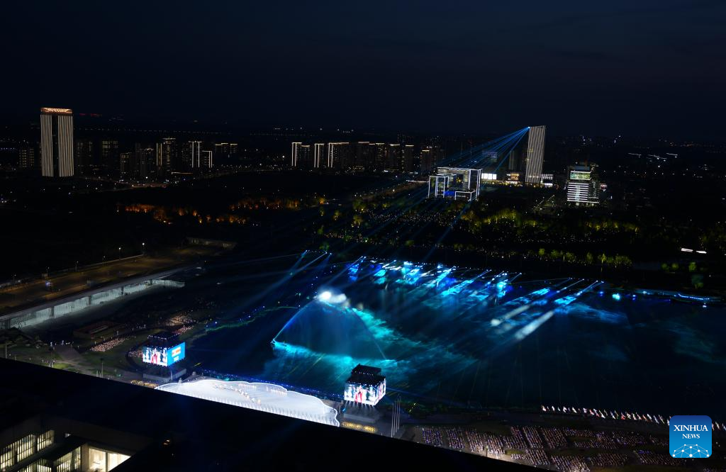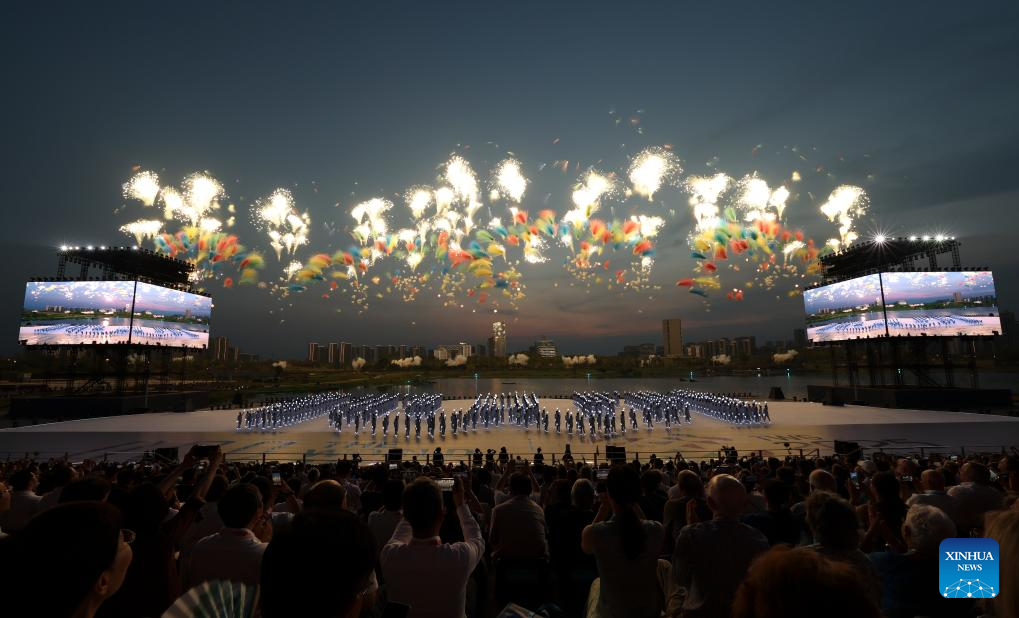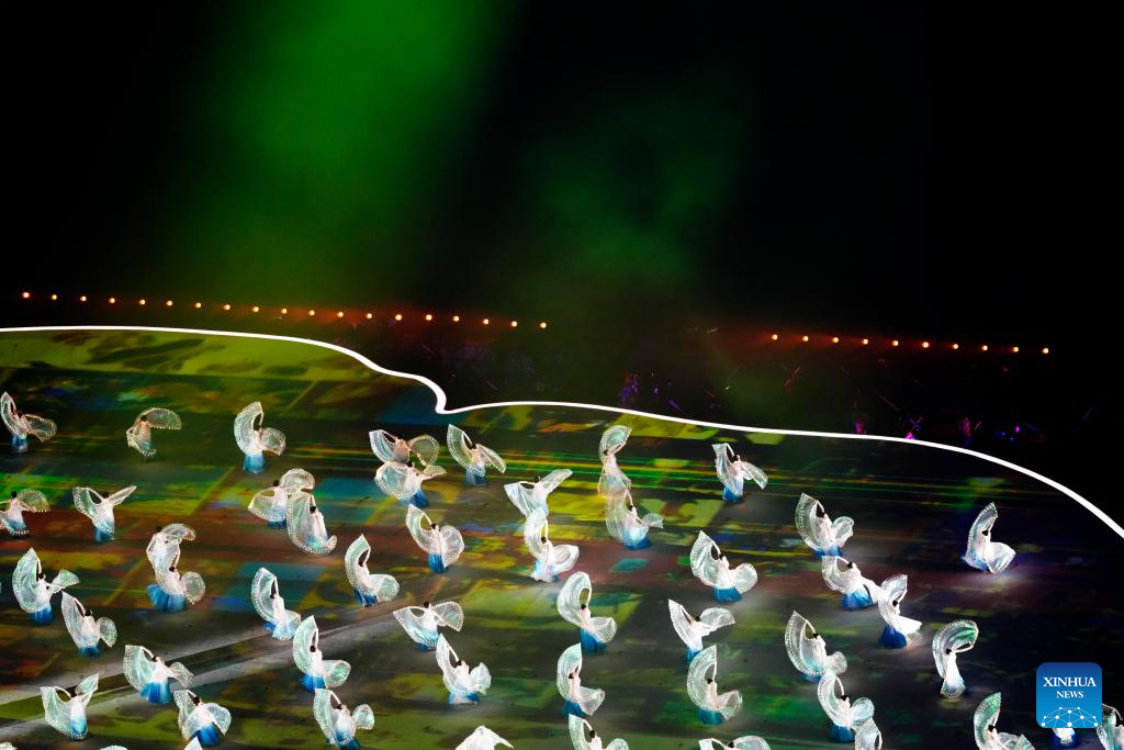 Photo taken on Aug. 7, 2025 shows the performance of the opening ceremony of the World Games 2025 in Chengdu, southwest China's Sichuan Province. (Xinhua/Jiang Hongjing)