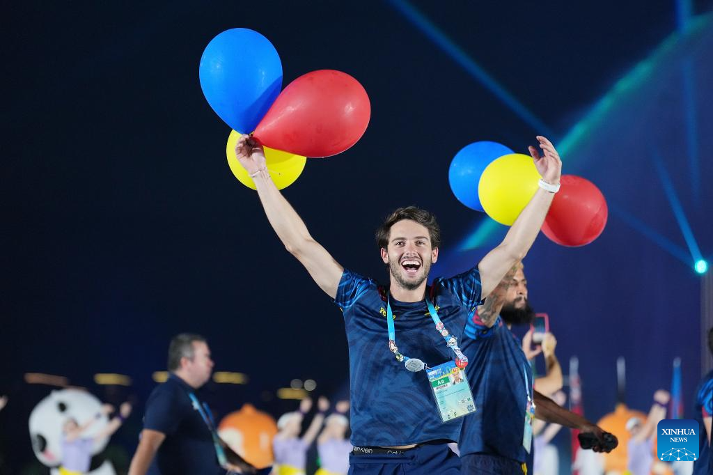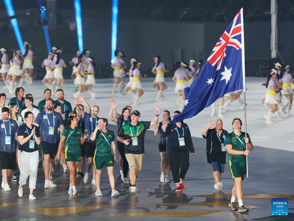Members of the delegation of Australia parade during the opening ceremony of the World Games 2025 in Chengdu, southwest China's Sichuan Province, on Aug. 7, 2025. (Xinhua/Jiang Kehong)