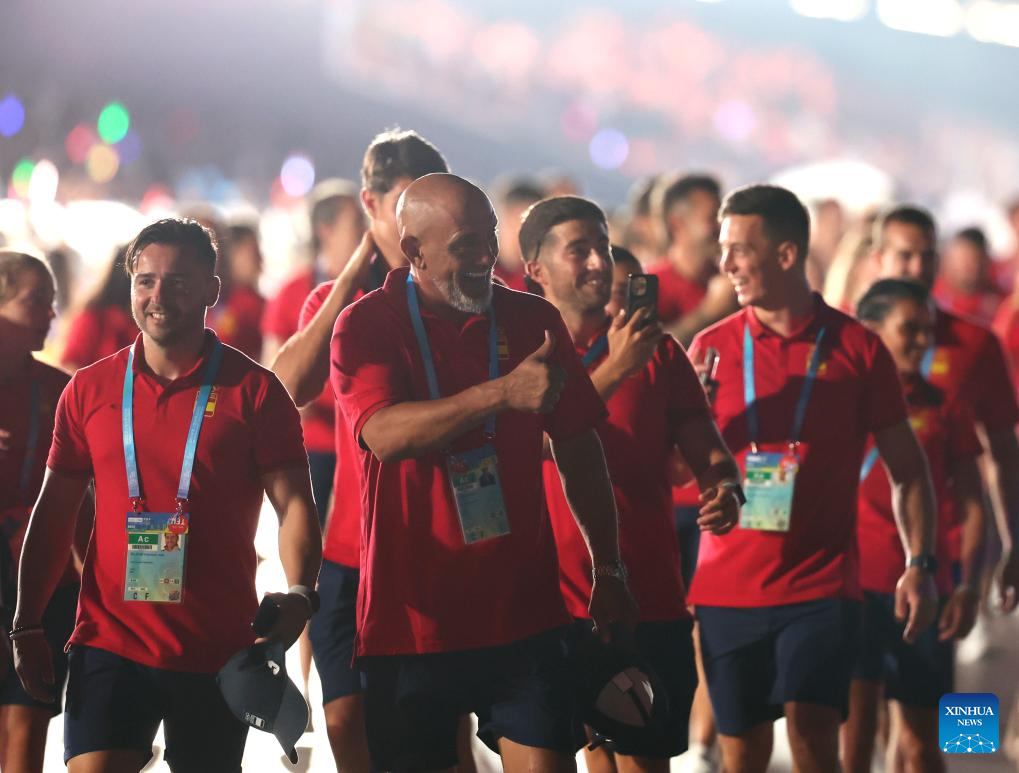 Members of the delegation of Spain parade during the opening ceremony of the World Games 2025 in Chengdu, southwest China's Sichuan Province, on Aug. 7, 2025. (Xinhua/Chen Bin)