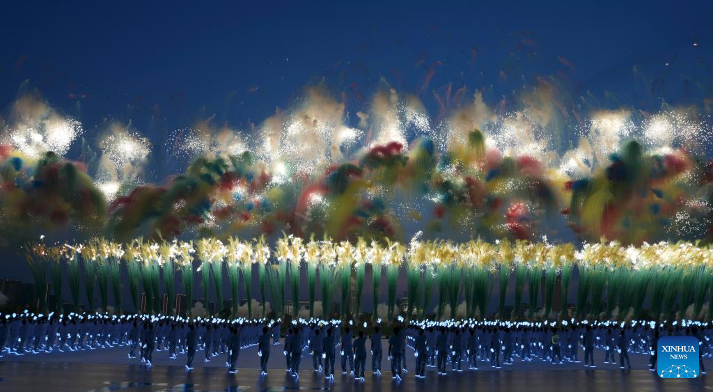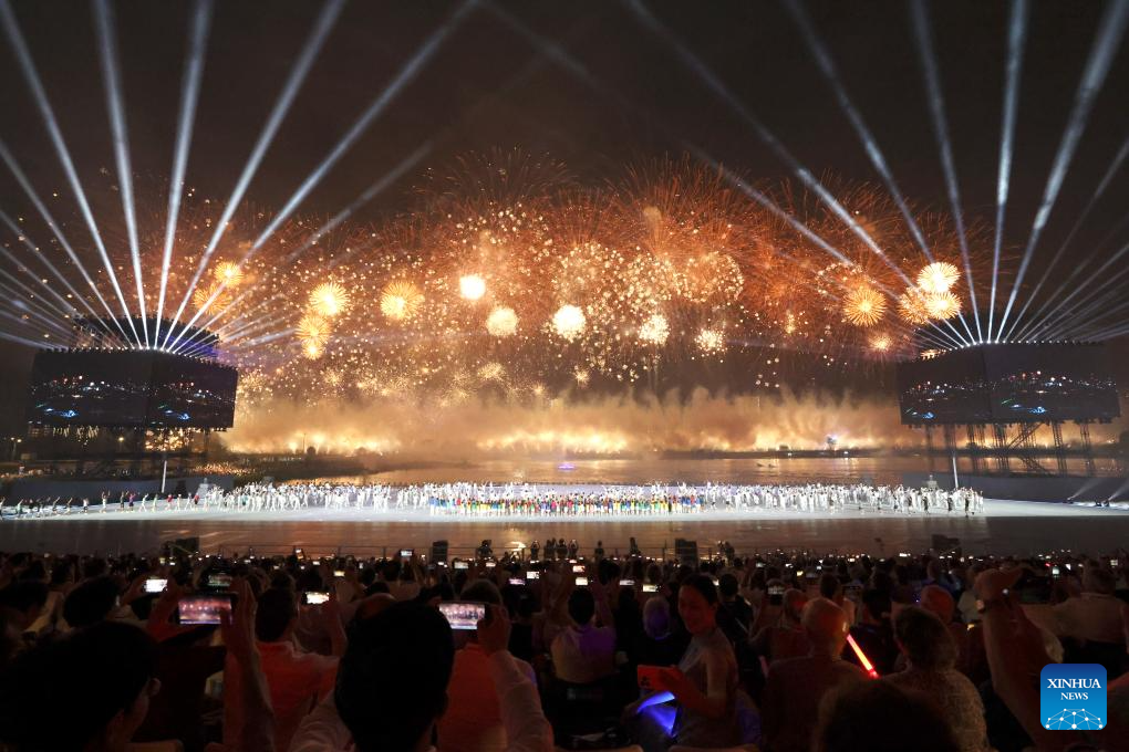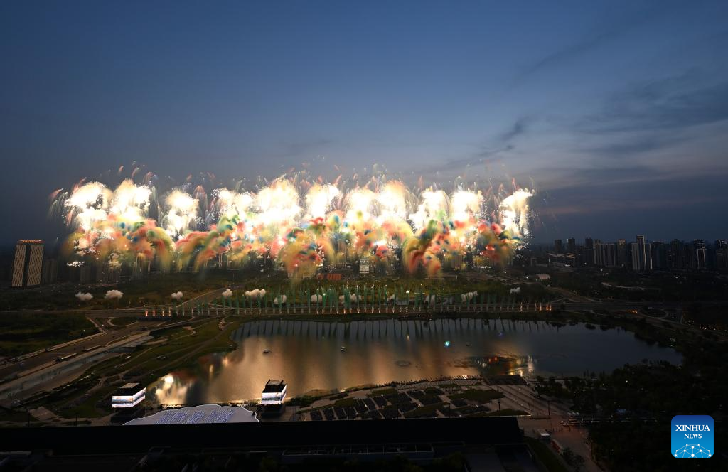 Fireworks are seen during the opening ceremony of the World Games 2025 in Chengdu, southwest China's Sichuan Province, on Aug. 7, 2025, (Xinhua/Sun Fei)