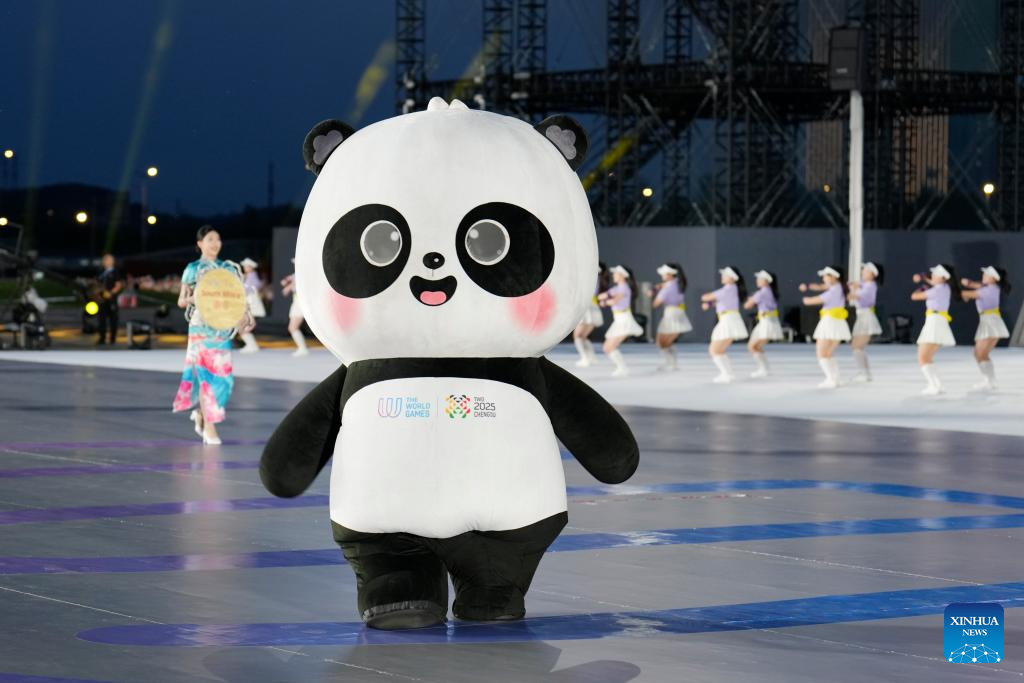 "Shubao", one of the mascots, is seen during the opening ceremony of the World Games 2025 in Chengdu, southwest China's Sichuan Province, on Aug. 7, 2025. (Xinhua/Liu Kun)
