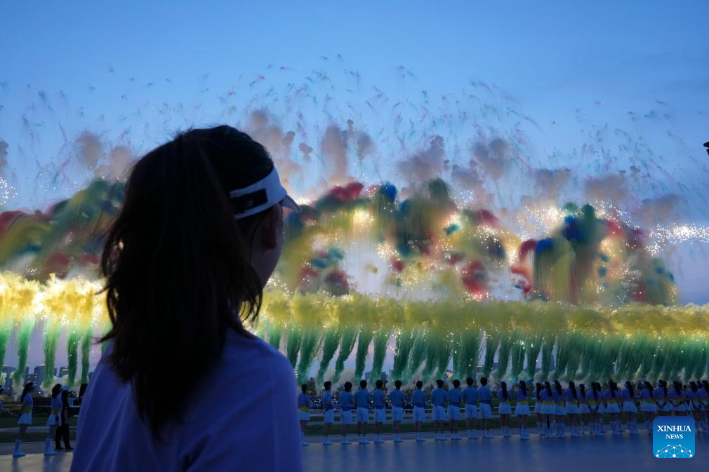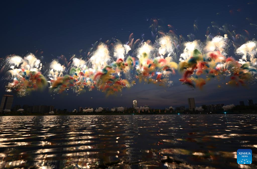 Fireworks are seen during the opening ceremony of the World Games 2025 in Chengdu, southwest China's Sichuan Province, on Aug. 7, 2025, (Xinhua/Bei He)
