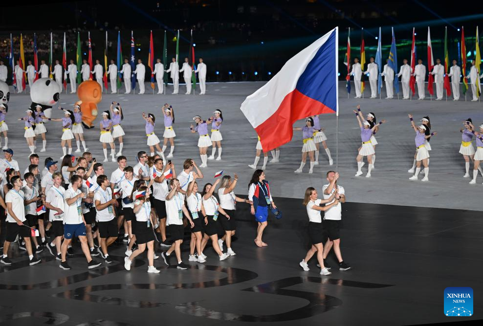Members of the delegation of the Czech Republic parade during the opening ceremony of the World Games 2025 in Chengdu, southwest China's Sichuan Province, on Aug. 7, 2025. (Xinhua/Du Zixuan)