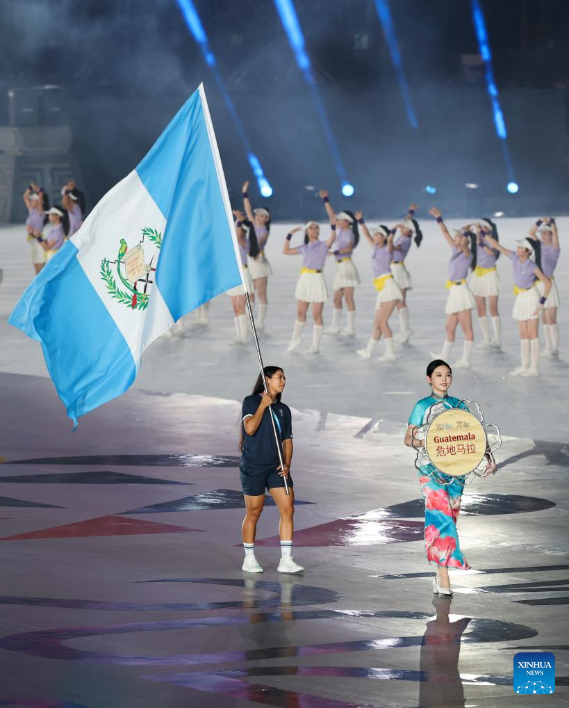 Members of the delegation of Guatemala parade during the opening ceremony of the World Games 2025 in Chengdu, southwest China's Sichuan Province, on Aug. 7, 2025. (Xinhua/Jiang Kehong)