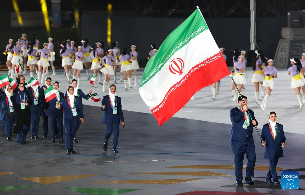 Members of the delegation of Iran parade during the opening ceremony of the World Games 2025 in Chengdu, southwest China's Sichuan Province, on Aug. 7, 2025. (Xinhua/Jiang Kehong)
