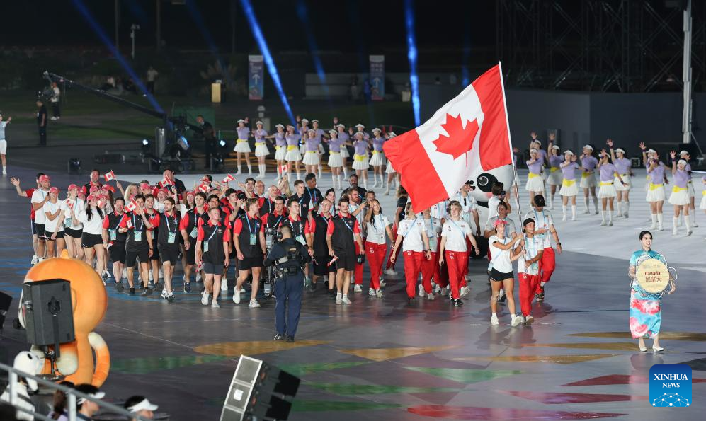 Members of the delegation of Canada parade during the opening ceremony of the World Games 2025 in Chengdu, southwest China's Sichuan Province, on Aug. 7, 2025. (Xinhua/Jiang Kehong)