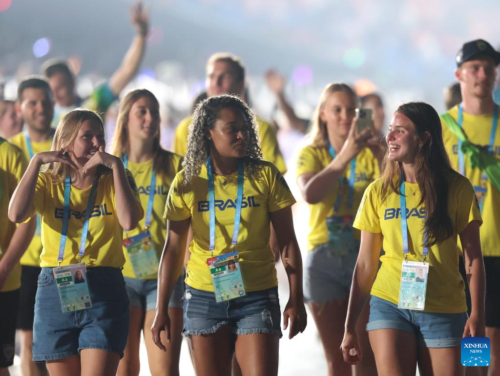 Members of the delegation of Brazil parade during the opening ceremony of the World Games 2025 in Chengdu, southwest China's Sichuan Province, on Aug. 7, 2025. (Xinhua/Chen Bin)