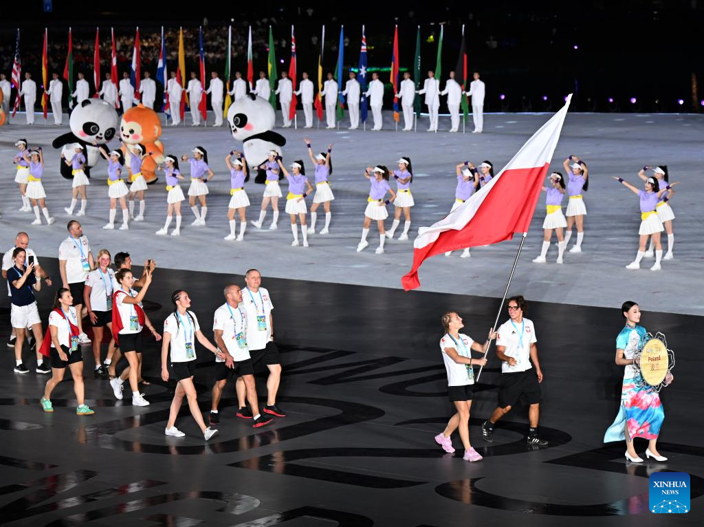 Members of the delegation of Poland parade during the opening ceremony of the World Games 2025 in Chengdu, southwest China's Sichuan Province, on Aug. 7, 2025. (Xinhua/Du Zixuan)