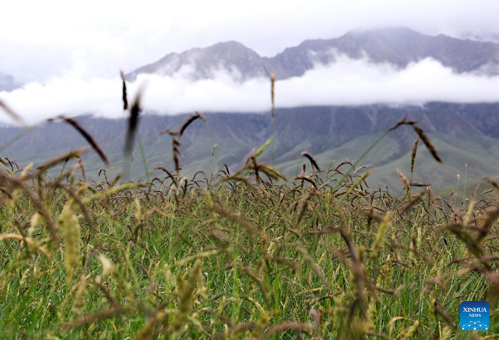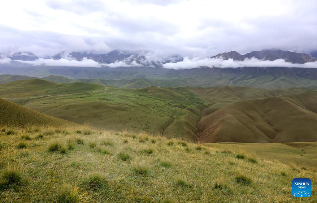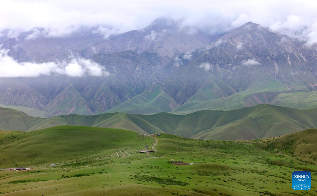 This photo taken on Aug. 6, 2025 shows a view of Kunlun Mountains scenic area in Qira County, northwest China's Xinjiang Uygur Autonomous Region. Known for its unique natural beauty and rich cultural heritage, Kunlun Mountains scenic area has attracted numerous visitors during summer vacation. (Xinhua/Cai Guodong)