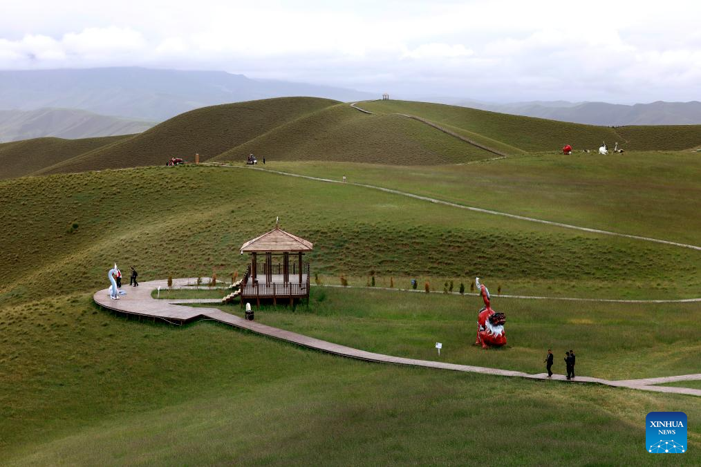 This photo taken on Aug. 6, 2025 shows a view of Kunlun Mountains scenic area in Qira County, northwest China's Xinjiang Uygur Autonomous Region. Known for its unique natural beauty and rich cultural heritage, Kunlun Mountains scenic area has attracted numerous visitors during summer vacation. (Xinhua/Wang Fei)