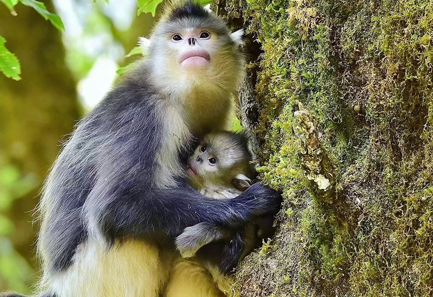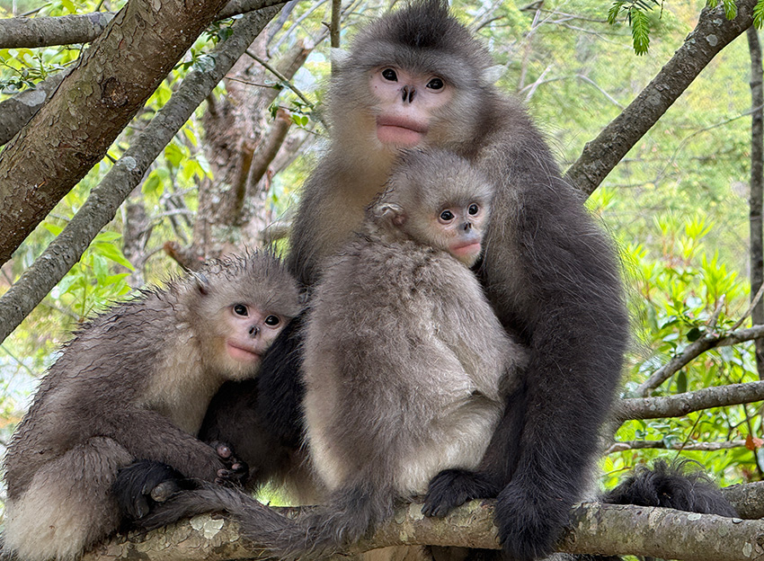 The black-and-white snub-nosed monkey is an endangered and valued species endemic to China. In recent years, the population of the species at the Baima Snow Mountain National Nature Reserve has increased steadily thanks to the improving ecological environment and conservation efforts.