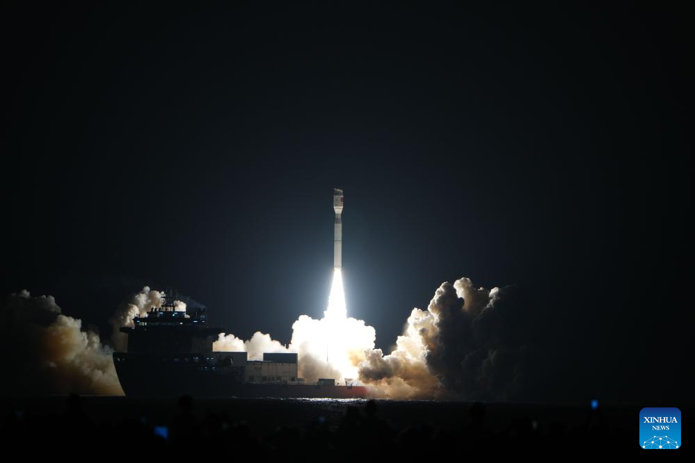 The rocket blasted off from sea at 12:31 a.m. (Beijing Time) near the city of Rizhao. The Taiyuan Satellite Launch Center conducted the offshore launch mission.