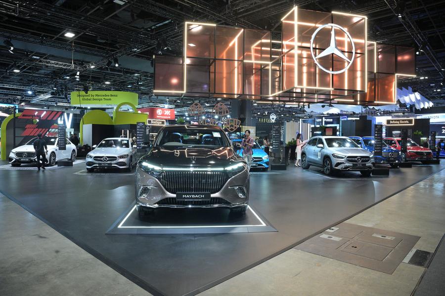 This photo shows the booth of German automaker Mercedes-Benz at the Singapore Motorshow held in Suntec Singapore Convention &Exhibition Centre in Singapore, Jan. 9, 2025. (Xinhua/Then Chih Wey)