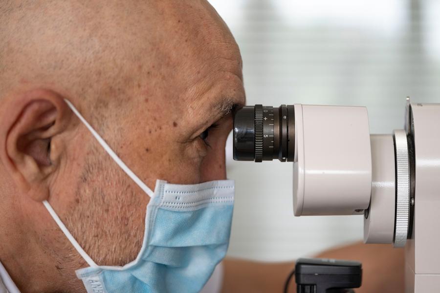 Saulebek Kabylbekov is pictured at Daqing Ophthalmology Hospital in Daqing City, northeast China's Heilongjiang Province, July 16, 2025. (Xinhua/Zhang Tao)