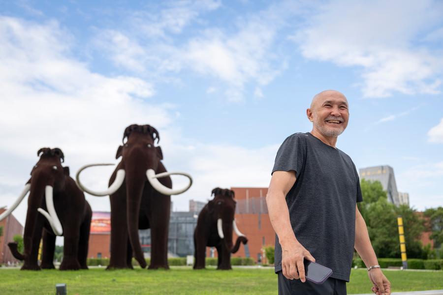 Saulebek Kabylbekov walks in front of Daqing Museum in Daqing City, northeast China's Heilongjiang Province, July 16, 2025. (Xinhua/Zhang Tao)