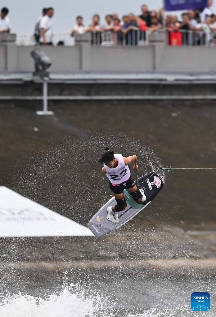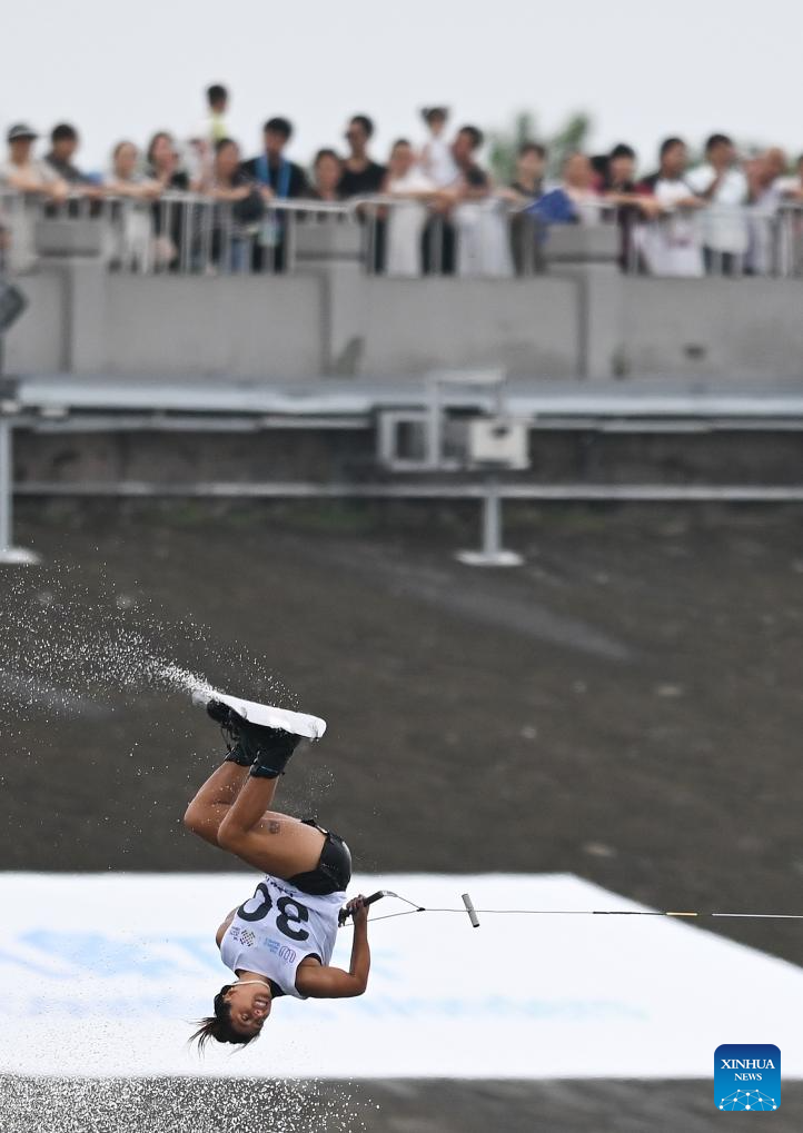 Xu Lu of China competes during the women's wakeboard freestyle final of Waterski & Wakeboard event at The World Games 2025 in Chengdu, southwest China's Sichuan Province, Aug. 10, 2025. (Xinhua/Chen Zhenhai)