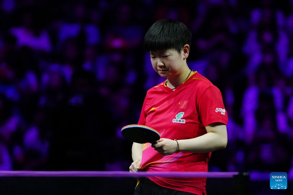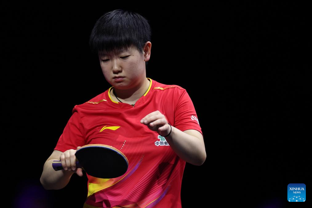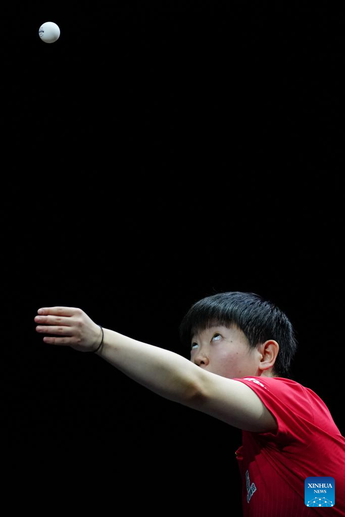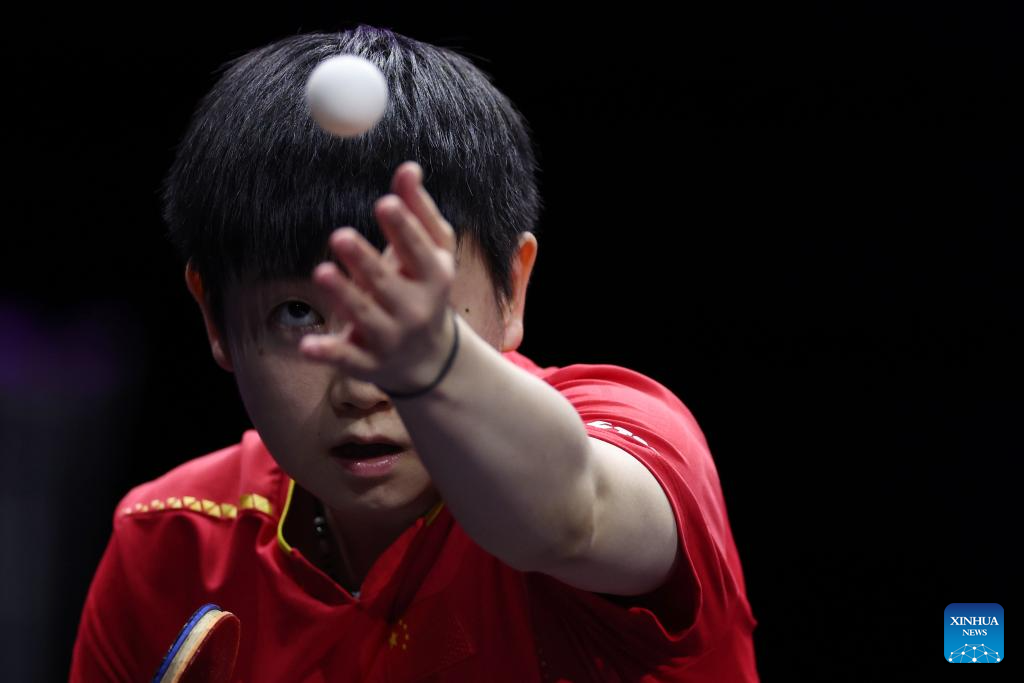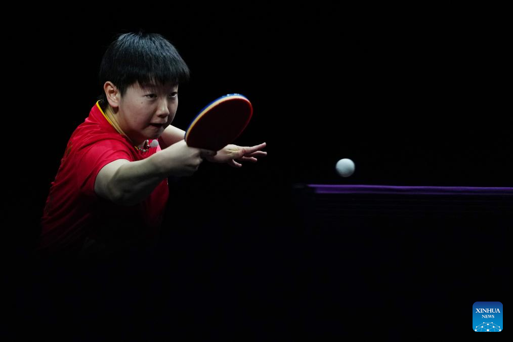 Sun Yingsha competes during the women's singles final match between Chen Xingtong of China and Sun Yingsha of China at the WTT Champions Yokohama 2025 in Yokohama, Japan, Aug. 11, 2025. (Xinhua/Jia Haocheng)