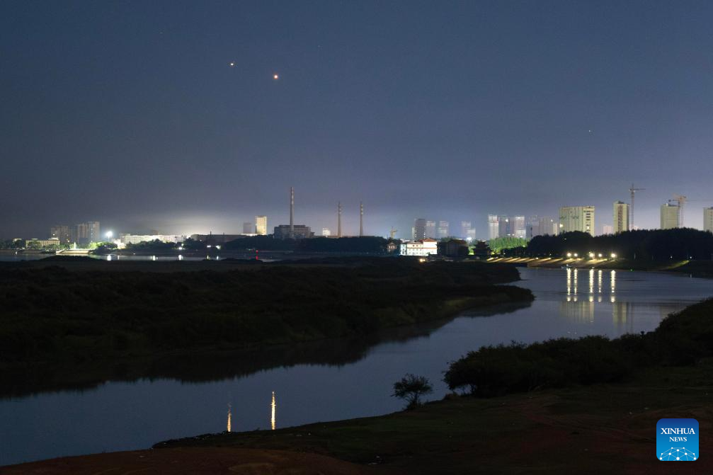 This photo taken on Aug. 12, 2025 shows the planets of Jupiter and Venus in the sky over Jiamusi City, northeast China's Heilongjiang Province. (Photo by Chen Zhiguo/Xinhua)