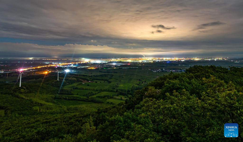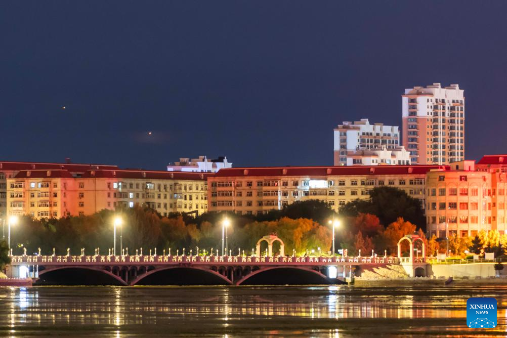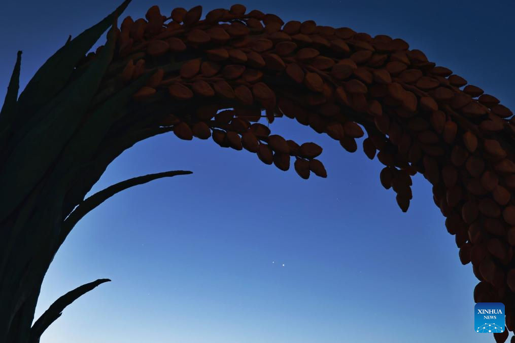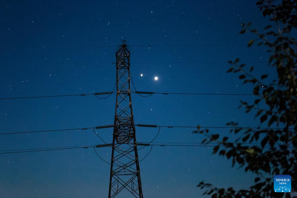 This photo taken on Aug. 12, 2025 shows the planets of Jupiter and Venus in the sky over Qiqihar City, northeast China's Heilongjiang Province. (Photo by Wang Yonggang/Xinhua)