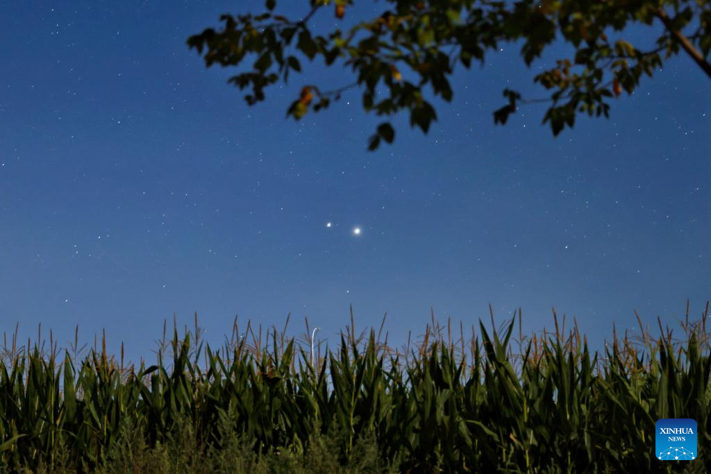 This photo taken on Aug. 12, 2025 shows the planets of Jupiter and Venus in the sky over Fujin City, northeast China's Heilongjiang Province. (Photo by Qu Yubao/Xinhua)