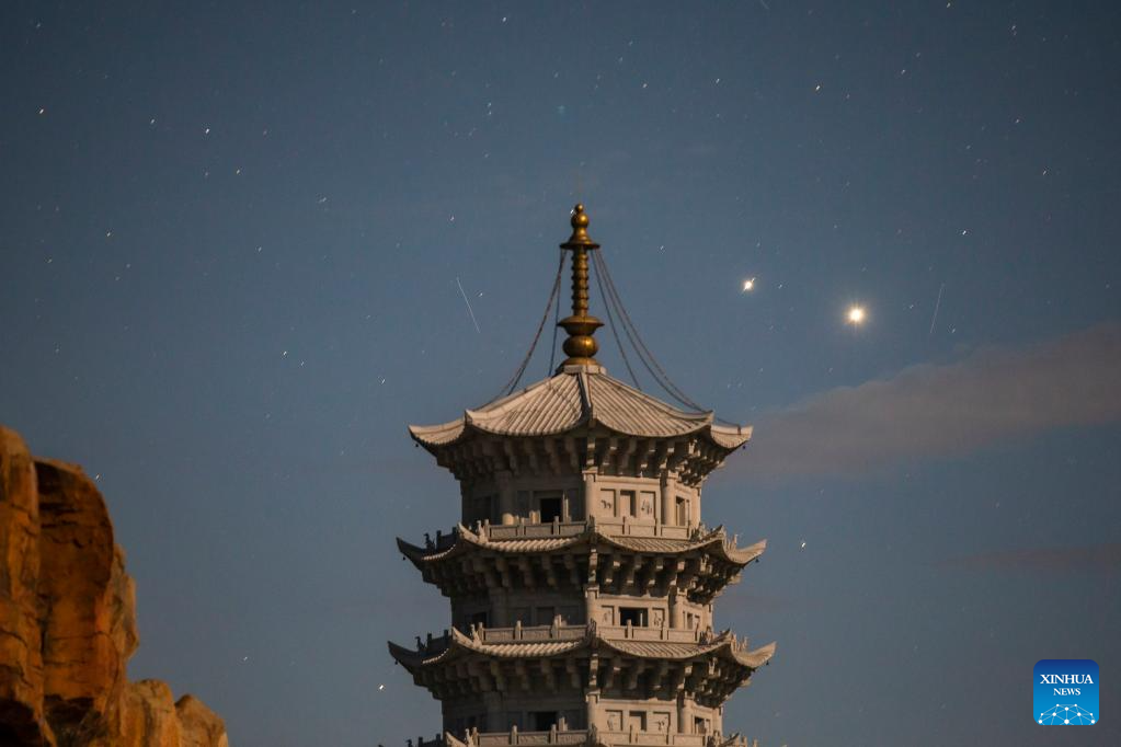 This photo taken on Aug. 12, 2025 shows the planets of Jupiter and Venus in the sky over Jiayin County of Yichun City, northeast China's Heilongjiang Province. (Photo by Li Shaojun/Xinhua)