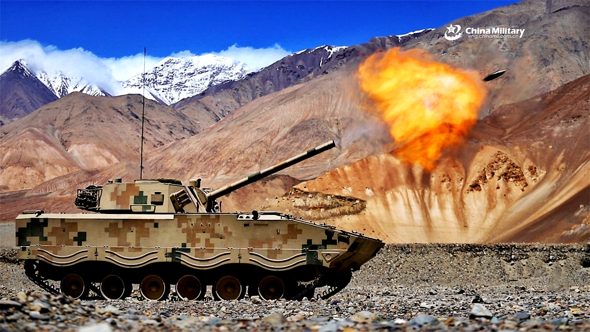 A PLZ-10 120mm self-propelled mortar-howitzer system attached to an artillery detachment of the Chinese PLA Army opens fire at the target during a live-fire shooting training exercise on August 4, 2025. (eng.chinamil.com.cn/Photo by Meideti)