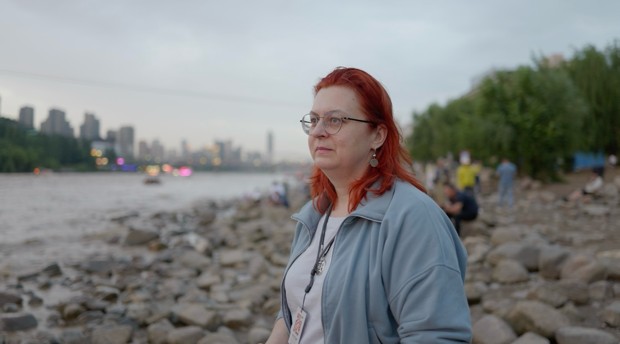 Russian artist Anna Zimchenko gazes at the Yellow River. (People's Daily Online/Yan Xiaojing)