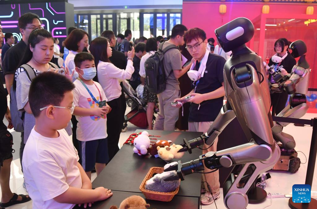 Themed "Making Robots Smarter, Making Embodied Agents More Intelligent," the five-day conference that opened on Aug. 8 features forums, exhibitions, competitions and networking events -- with over 200 robotics companies from around the world presenting their latest innovations. (Xinhua/Li Xin)