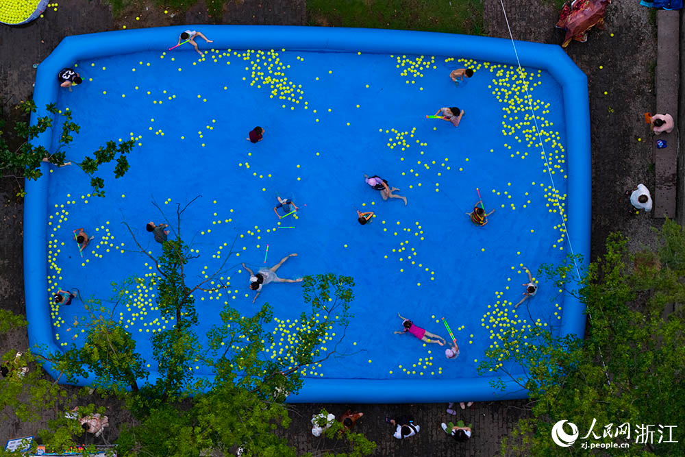 On Aug. 10, children have fun in a pool in the ancient Cicheng town, Jiangbei district of Ningbo city, east China's Zhejiang Province. (People's Daily Online/Zhang Yongtao)