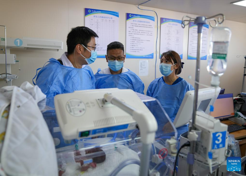 Doctors from Quanzhou of southeast China's Fujian Province and Lhorong County of Qamdo discuss on a patient's condition at a hospital in Qamdo, southwest China's Xizang Autonomous Region, July 21, 2025. Since 2015, 203 hospitals from 17 provinces and cities nationwide have deployed over 2,000 experts in teams to assist medical institutions in Xizang, training 5,536 local medical staff in the region. (Xinhua/Jigme Dorje)