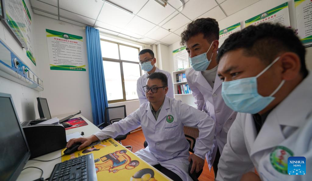 Doctors from Dalian of northeast China's Liaoning Province and Nagqu discuss on a patient's condition at a hospital in Nagqu, southwest China's Xizang Autonomous Region, July 18, 2025. Since 2015, 203 hospitals from 17 provinces and cities nationwide have deployed over 2,000 experts in teams to assist medical institutions in Xizang, training 5,536 local medical staff in the region. (Xinhua/Jigme Dorje)