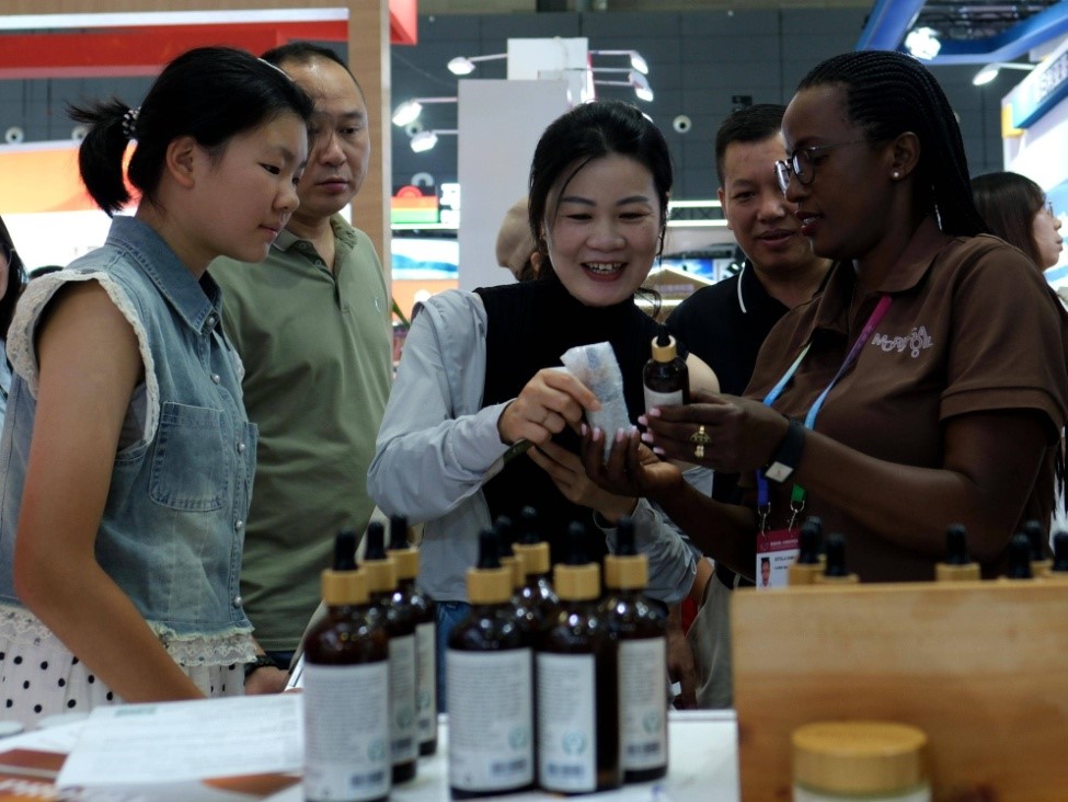 Visitors learn about African products at the fourth China-Africa Economic and Trade Expo in Changsha, central China's Hunan province, June 14, 2025. (Photo/Lin Daohui)