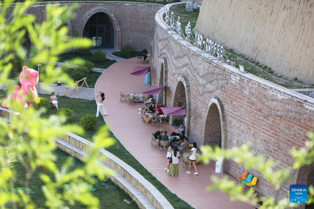 Visitors are seen at a coffee shop in Dingxi City, northwest China's Gansu Province, Aug. 13, 2025. People enjoy their summer time by travelling around the country. (Photo by Wang Kexian/Xinhua)