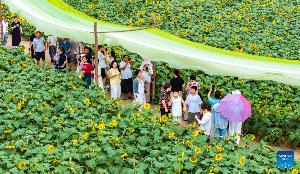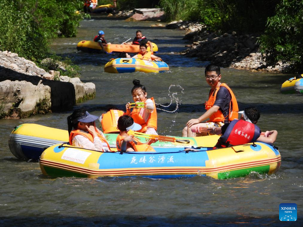 Tourists visit a scenic area in Zhumadian City, central China's Henan Province, Aug. 12, 2025. People enjoy their summer time by travelling around the country. (Photo by Zhao Yongtao/Xinhua)