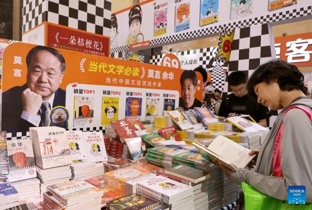 People visit the 2025 Shanghai Book Fair in Shanghai, east China, Aug. 13, 2025. The book fair kicked off on Wednesday and will last until Aug. 19. (Photo by Zhang Yue/Xinhua)