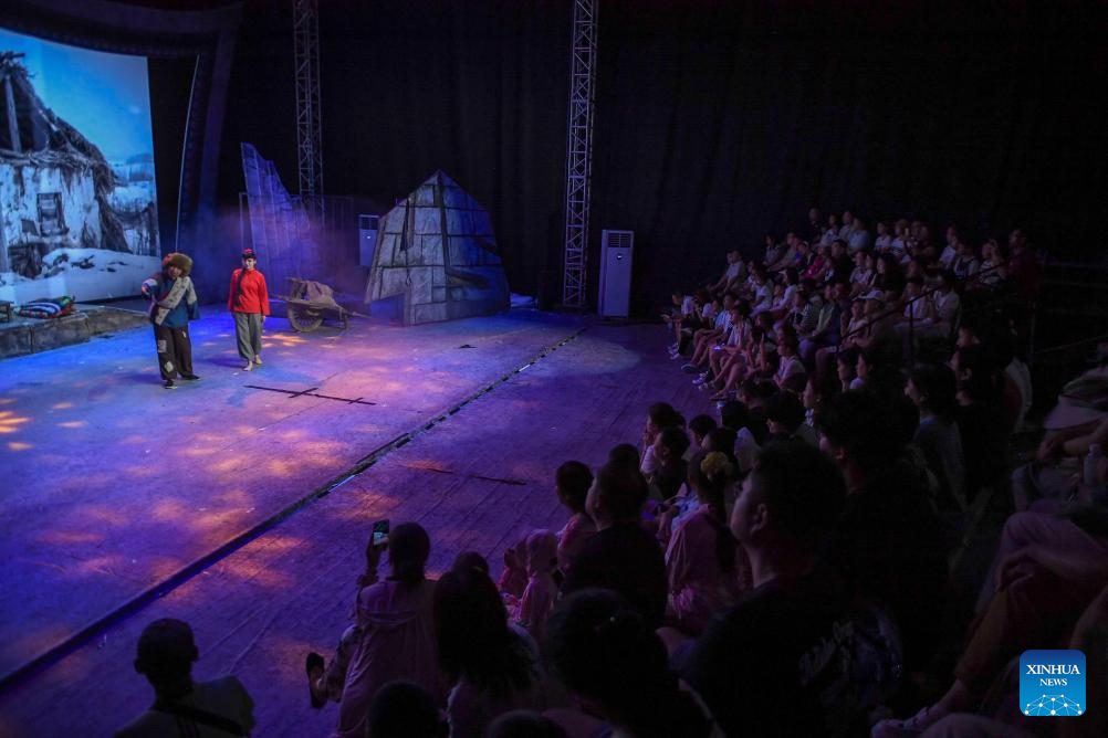 Tourists enjoy the opera "The White-Haired Girl" at a film museum built on the former site of Changchun Film Studio in Changchun, northeast China's Jilin Province, Aug. 7, 2025. Since the start of the summer vacation, the film museum has attracted visitors with film resources, with peak daily visitor numbers exceeding 8,000. (Xinhua/Liu Wenhui)